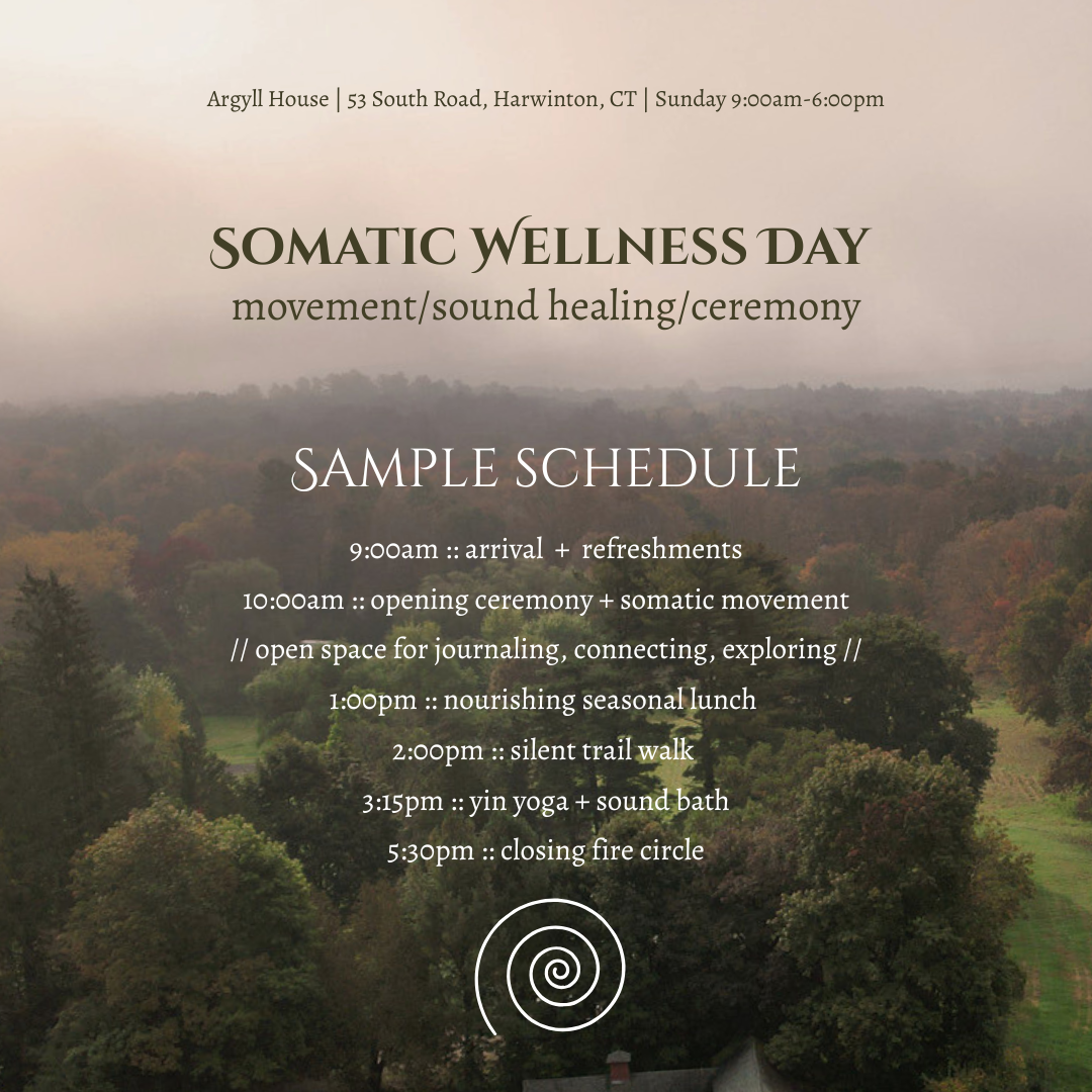 Refreshments and a seasonal lunch by Brooklyn-based chef @essentialherbs.nyc included. Overnight accommodations for Saturday night into Sunday’s Somatic Wellness Day at Argyll House are available upon request at an additional charge. Email stay@argyll.house to discuss accommodation options.